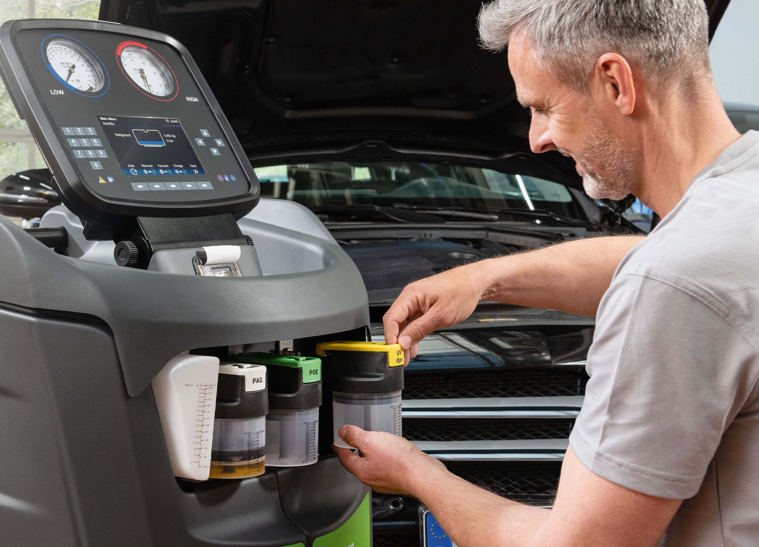 Meeting the technically demanding European standards, the ACS 653’s high precision measuring technology and fully-automatic service enables efficient service work on the A/C systems of cars...