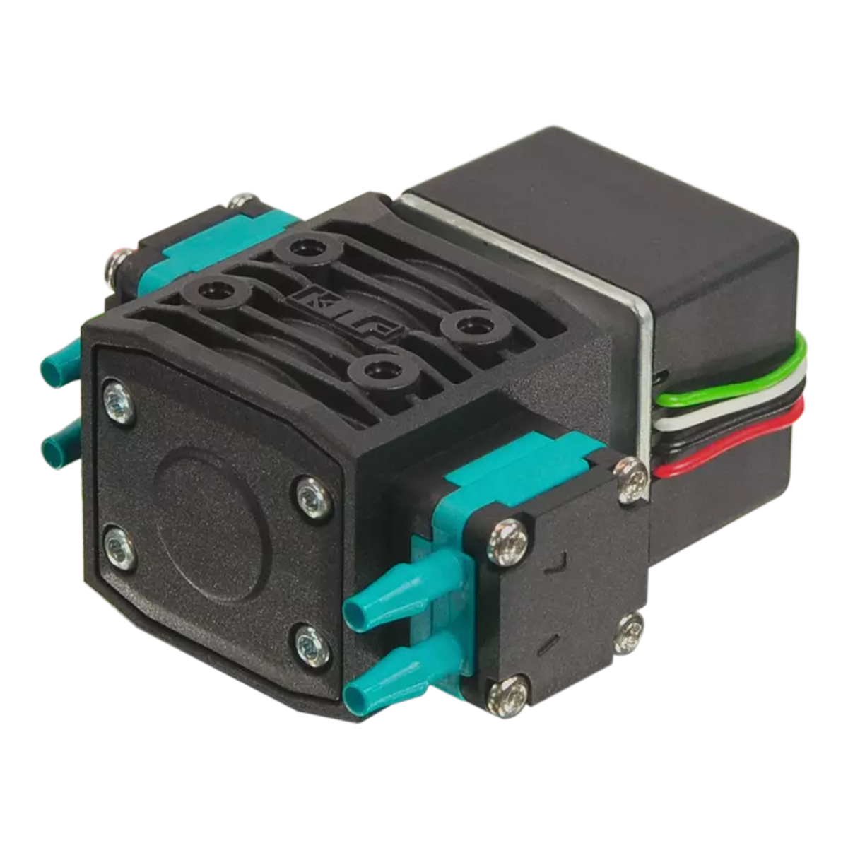 Flow Rate (max.): 1.5 l/min Pressure (max.): 2 bar (rel.) Suction Height (max.): 2.7 mH₂O KNF diaphragm liquid pumps combine maximum performance with minimum size. The use of chemically resistant...