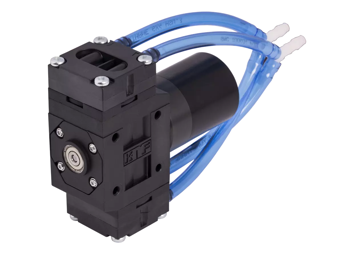Flow Rate (max.): 5.6 l/min Pressure (max.): 1.5 bar (rel.) Vacuum (max.): 55 mbar (abs.) KNF diaphragm gas pumps transfer or compress gases and vapors and generate vacuum without contaminating...