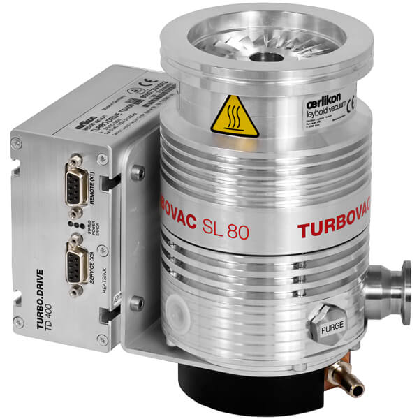 The TURBOVAC turbomolecular vacuum pumps with mechanical rotor suspension are used in the pressure range from 10-1mbar (0.75 x 10-1Torr) to 10-10mbar (0.75 x 10-1Torr). Pumping speeds for air vary from 35 l/s to 2400 l/s. Because of its compact design, the most reliable ceramics ball bearings and the simplicity of operation, this line of pumps is used in all high vacuum and ultrahigh vacuum areas of application.